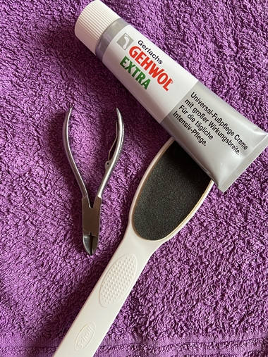 Anschließend cremen wir unsere Füße mit der GEHWOL EXTRA Universal-Fußpflege Creme ein: