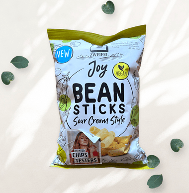 Die veganen Joy Bean Sticks Sour Cream Style enthalten weiße Bohnen und Puntabohnen und sind mit einer Sour Cream Gewürzmischung verfeinert. Durch ihre schmale Röhrenform eignen sie sich sehr gut zum Dippen und natürlich auch pur zum Knabbern. Außerdem haben sie 30% weniger Fett als herkömmliche Chips.