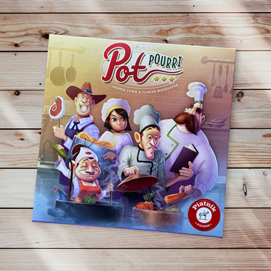 Zu viele Köche verderben den Brei – das kann euch auch bei „Pot Pourri“ passieren, denn auf dem Herd stehen nur drei Töpfe für alle Spieler/innen. Vor dem Kochen müssen sich alle die nötigen Zutaten beschaffen. Erst dann können die Spieler/innen aus Fisch, Reis, Zwiebeln und weiteren sieben Lebensmitteln leckere Gerichte kreieren. Beim Kochen ist der Fantasie kaum Grenzen gesetzt: ob mediterran, slawisch, französisch, fernöstlich oder amerikanisch/tex-mex, man sollte sich möglichst genau an die Rezeptangaben zu halten und so viel Zutaten wie möglich in die Töpfe zu füllen. Denn je mehr Übereinstimmungen zwischen den Zutaten im Topf und dem eigenen Rezept bestehn, desto mehr Felder kann man seinen Spielstein auf der Gourmetleiste bewegen.