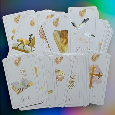 Mit den modernen Lenormandkarten, die aus 36 Karten bestehen, kann man sich jeden Tag wertvolle Hinweise und Ratschläge holen. Sie eignen sich sowohl für Neueinsteiger als auch für erfahrene Kartenleger/innen. Die Karten sehen in ihrer Schlichtheit nicht nur edel aus, sie haben auch eine sehr gute Qualität und liegen durch ihre Größe sehr gut in der Hand. Durch die reduzierte Illustration der Karten können sich besonders Anfänger auf das Wichtige konzentrieren und werden nicht abgelenkt.