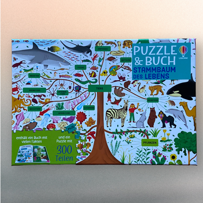 Puzzle & Buch „Stammbaum des Lebens“, erschienen im September 2022 bei Usborne, 300 Teile Puzzle + Buch, 15 Euro, ISBN 978-1789417906