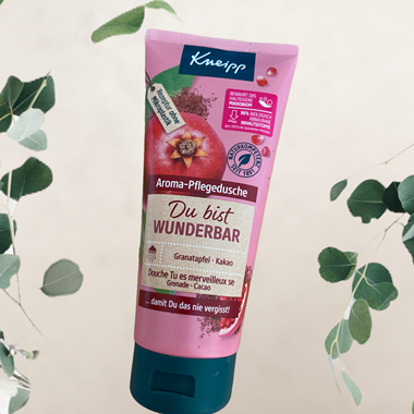 Sie enthält wertvolle Extrakte aus Granatapfel und Kakao, die herrlich fruchtig-herb duften, während natürlich pflegendes Öl für weiche und geschmeidige Haut sorgt, so dass ich nach dem Duschen keine Bodylotion mehr benötige. Die Aroma-Pflegedusche pflegt meine Haut, denn sie trocknet sie nicht aus und bewahrt das hauteigene Mikrobiom. Außerdem sind ihre Inhaltsstoffe zu 98% abbaubar gem. OECD oder äquivalenten Methoden. Super, dass Kneipp auch an unsere Umwelt denkt.
