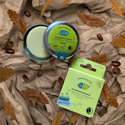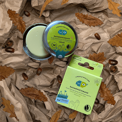 Wir sind begeistert von der Idee, Beautypflegeprodukte in fester Form anzubieten. Neben FesterHandcreme Daumenschmaus, Fester Fußcreme Zehenschmaus findet ihr bei 4peoplewhocare auch Nachhaltige Lippenpflege Auf`s Mäulchen, Feste Körperbutter Best Buddy und vieles mehr. Schaut doch mal im Onlineshop vorbei – es lohnt sich!