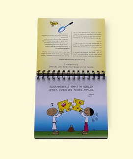 Das Kinderspiel enthält 36 Karten, 4 Spielbretter und ein Anleitungsbuch: