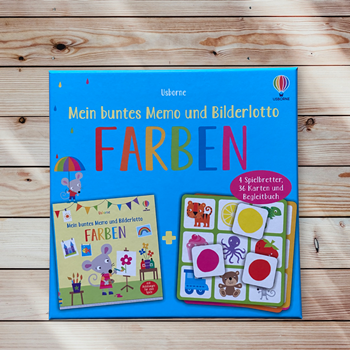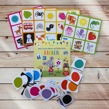 „Mein buntes Memo und Bilderlotto Farben“, erschienen 2022 bei Usborne, UVP 14,99 Euro, ISBN 978-1789417753