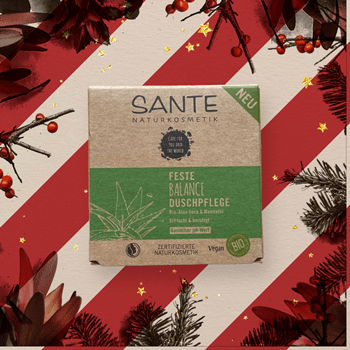 Neben vielen Köstlichkeiten enthält die Winterzauber Box auch ein praktisches Goodie: SANTE FESTEDUSCHPFLEGE. Sie ist vegan und enthält Bio-Aloe Vera, die der Haut Feuchtigkeit spendet und sie beruhigt. Die Duschpflege ist plastikfrei verpackt. Ein tolles Zusatzprodukt, über das wir uns sehr gefreut haben.