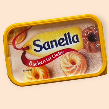 Sanella verwende ich sehr gern zum Backen, denn sie hat einen Fettgehalt von 70%. So gelingen mir alle Kuchenrezepte sehr gut: ob Rühr-, Hefe- oder Mürbeteig.