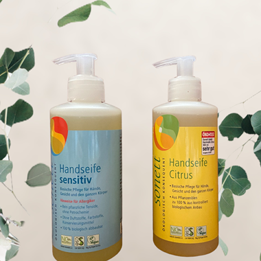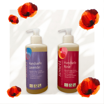 Hallo ihr Lieben. Das Wetter wird immer ungemütlicher und kälter und damit beginnt auch leider wieder die Zeit der Atemwegsinfektonen. Ob Grippe, Halsschmerzen oder Corona – Hygieneregeln wie gründliches Hände waschen, Abstand zu anderen Menschen und Verzicht auf Hände schütteln sind sehr wichtig. Besonders das regelmäßige und richtige Hände waschen kann die Übertragung der Krankheitserreger durch unsere Umgebung verhindern. Uns ist es dabei wichtig, dass wir milde Reinigungsprodukte benutzen, die unsere Hände nicht austrocknen. Wir möchten euch heute hochwertige, pflegende Pflanzenseifen von Sonett vorstellen, denn wir konnten eine schöne Auswahl an verschiedenen Sonett Handseifen testen. Sonett produziert seit 1977 nach ökologischen Standarts und gehört zu den ersten, dieökologische Wasch- und Reinigungsmittel in Deutschland herstellen. Die Öle und die ätherischen Öle für diese Handseifen stammen zu 100% aus kontrolliert biologischem Anbau oder Wildsammlung. Das Bio-Kokosfett wird von Kleinbauern auf den Philippinen in den Regionen Davao und Agusan gewonnen. Alle Handeseifen sind zu 100% biologisch abbaubar.