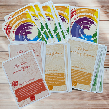 Die Chakren – unsere Energiezentren – spielen eine entscheidende Rolle für unser körperliches und seelisches Wohlbefinden. Wenn sie blockiert oder zu stark geöffnet sind, kann unsere Energie gebremst sein oder überschießend verpuffen. Schaffst du es, einen harmonischen Energiefluss herzustellen, kannst du dein ganzes Potential einsetzen, um positiv mit dem Leben umzugehen, Herausforderungen standzuhalten und die richtigen Entscheidungen zu treffen. Die Karten, die du ziehst, zeigen dir, auf welches Chakra du dich konzentrieren solltest, und helfen dir, über Meditation, Affirmationen und Selbstreflexion die richtigen Lebensfragen zu erkennen und zu beantworten. Deine Intuition wird dich leiten und dich ganz einfach auf den für dich richtigen Weg führen.