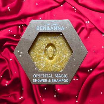 Total verliebt habe ich mich in das Oriental Magic Shower & Shampoo, dessen traumhaft schöner, orientalischer Kräuter-Duft sich im ganzen Badezimmer verteilt. Die LOVE SOAP ist gleichzeitig ein festes Dusch- und Haarshampoo. Es enthält keine Phthalate, Peroxide, Parabene oder Mikroplastik und ist vegan.