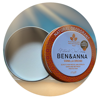 Mir gefällt auch die Natural Deo Creme Vanilla Orchid in der recyclebaren Weißblechdose sehr gut. Genau wie der Deostick schützt sie auch zuverlässig vor Schweißgeruch. Sie lässt sich leicht auf der Haut verteilen, krümelt und klebt nicht und duftet so toll nach Vanille. Die Deocreme enthält kein Aluminium, keine PEG’s, Parabene oder Phthalate. Außerdem ist sie auch vegan und glutenfrei.