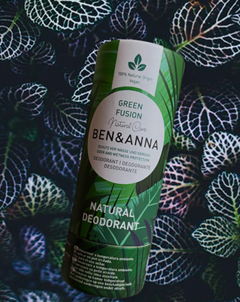 Das Natural Deo „Green Fusion“ wird in einer reyclebaren Pappverpackung aus FSC-zertifiziertem Papier geliefert, die einen praktischen Schiebemechanismus hat. Es enthält kein Aluminium, keine PEG’s, Parabene oder Phthalate. Außerdem ist es vegan und glutenfrei.