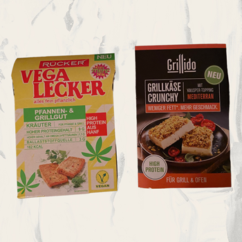 Das vegane Grillprodukt Vega Lecker Pfannen- und Grillgut Kräuter hat eine Hanf-Erbsen-Basis und enthält Proteine. Man kann es entweder schnell in der Pfanne oder auf dem Rost zubereiten. Launch Sommer 2022, 130 gr., UVP 2,29 Euro