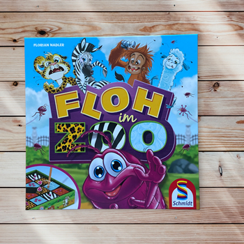 Hallo ihr Lieben. Winterzeit ist bei uns Spielezeit, besonders dann, wenn es draußen kalt und ungemütlich ist. Heute möchte wir euch das rasante Kinderspiel „Floh im Zoo“ von Florian Nadler vorstellen, das ganz neu bei SchmidtSpiele erschienen ist. Es eignet sich für 2-4 Kinder ab 5 Jahre und eine Spielrunde dauert ungefähr 10 Minuten.