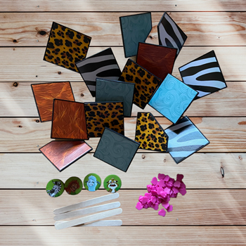 Jedes Kind sucht sich ein Tier aus, das er von den Flöhen befreien möchte und sucht sich den dazu passenden Tierchip aus. Außerdem braucht jeder noch ein Holzstäbchen. Auf jedes Spielfeld werden 2 Flöhe gesetzt.