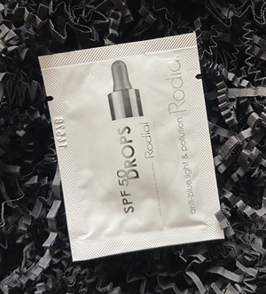 In der Box lag auch eine Probe Rodial – SPF 50 Drops bei, die man morgens in die Tagespflege mischt. Die Drops enthalten UVA- und UVB-Schutz sowie Blaulicht- und Antipollution-Wirkstoffe, die die Haut vor blauer Lichtstrahlung schützen sowie gegen Entzündungen, dunkle Flecken und vorzeitige Faltenbildung wirken.