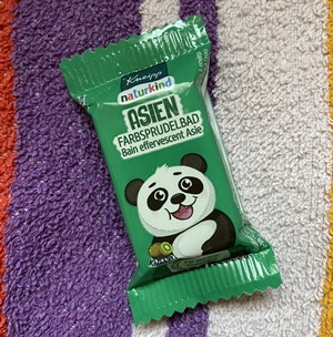 Das Asien Farbsprudelbad färbt das Badewasser schön grün und duftet lecker nach Kiwi.