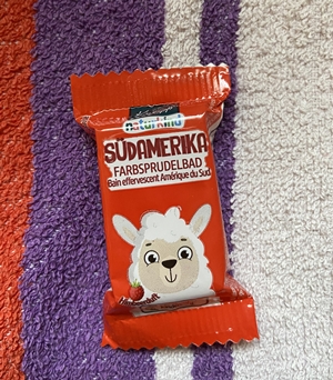 Meine Schwester und mein Bruder erzählen ihren Kindern beim Baden etwas Spannendes über die Tiere, die auf diesem Kontinent leben – so wird das abendliche Bad für meine Nichten und Neffen zum richtigen Abenteuer. Die niedlichen Bade-Sprudeltabs lassen sich übrigens auch super verschenken. Und nach dem Baden bleibt keine Farbe an Badewanne oder Körper zurück, denn man spült die Badewanne und Kind einfach mit warmen Wasser ab.