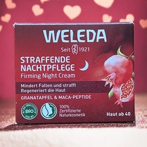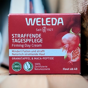 Hallo ihr Lieben. An unserer Gesichtshaut können wir nicht nur unsere Emotionen sehen sondern auch natürliche Veränderungsprozesse und Lebenserfahrungen. Mit zunehmenden Lebensalter verändern sich auch die Hautbedürfnisse: die Feuchtigkeitsbindung in der Haut nimmt ab, lichtbedingte Veränderungen werden sichtbar und kleine Trockenheitsfältchen zeigen sich. Unsere Haut benötigt dann Unterstützung bei der Zellerneuerung und benötigt mehr Feuchtigkeit. Für die Haut ab 40 ist die neue Weleda Straffende Gesichtspflegelinie entwickelt worden. Sie pflegt die Haut mit einer Wirkstoffkombination aus Bio-Granatapfelsamenöl und Peptiden aus der Bio-Maca-Wurzel. Ich habe für euch drei Produkte der neuen Pflegeserie ausprobiert und möchte sie euch jetzt gern näher vorstellen: