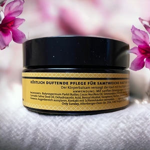 Er enthält einen hohen Anteil von Jojobaöl, Mohnöl und Hanföl sowie ätherisches Bergamotteöl, Immortellenöl (Strohblume) und echte Vanille. Bereits beim Öffnen des Tiegels duftet der Körperbalsam sehr angenehm frisch. Nach dem Duschen/Baden massiere ich den Körperbalsam sanft in meine Haut ein. Sofort wird sie samtweich und trockene Hautpartien werden wieder schön geschmeidig. Ich mag die etwas festere Textur des Körperbalsam sehr gern, die bei Kontakt mit der Hautwärme richtig auf der Haut zergeht und ganz schnell einzieht.