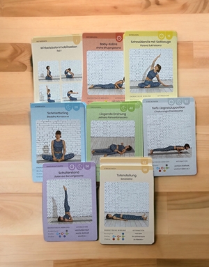 Mit diesem praktischen Kartenset kann jede/r seine individuellen Yoga-Sequenzen zusammenstellen – egal ob Anfänger oder Profi. Sehr praktisch ist die Sortierung der Karten in Sequenzen wie Aufwärmen, Streckungen, Vorbeugen usw. Mir gefällt die Box sehr gut, denn sie ist handlicher als ein Buch und ich kann auch einzelne Karten überall hin mitnehmen.