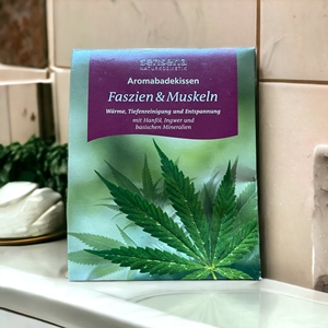 Wenn ich durch die körperliche Anstrengung vom Schleppen der Getränkekisten, Schieben des Rollstuhls und der Hausarbeit jeden Muskel in meinem Körper spüre, ist das Baden mit dem Aromabadekissen „Faszien & Muskeln – Wärme, Tiefenreinigung und Entspannung“ eine pure Wohltat für mich. Ingwer regt die Durchblutung an. Durch eine Mischung aus basischen Mineralien und Salzen in Verbindung mit dem angekurbelten Stoffwechsel werden überschüssige Säuren aus dem Bindegewebe abtransportiert. Gleichzeitig wird meine Haut mit edlem Hanföl und Meeresmineralien gepflegt und mit ganz viel Feuchtigkeit versorgt. Dazu duftet das Aromabadekissen noch entspannend nach ätherischen Ölen von Rosmarin und Eukalyptus. Wenn ich in das warme Badewasser eintauche, kann ich Körper und Sinne wunderbar entspannen.
