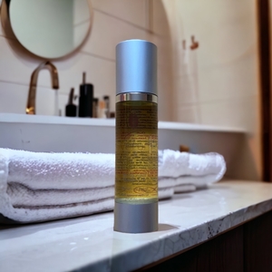 Es enthält Jojoba-, Kokos-, Argan- und Babassuöl sowie Vitamin E. Die Anwendung ist ganz einfach: einige Pumpstöße des Öls in die trockene (!) Gesichtshaut einmassieren und danach gut mit Wasser wieder abspülen.