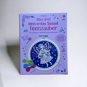 Hallo ihr Lieben. Auch im Sommer gibt es kühlere und regnerische Tage, an denen sich unsere jüngere Tochter gern drin mit Handarbeiten, Basteln oder Malen beschäftigt. Mit dem niedlichen Set „Mein erstes Stickset Feenzauber“ aus der Serie Alles drin! von Usborne können Kinder ab 7 Jahre ein niedliches Feenbild mit buntem Garn besticken. Erschienen ist das Stickset im Juni 2023.