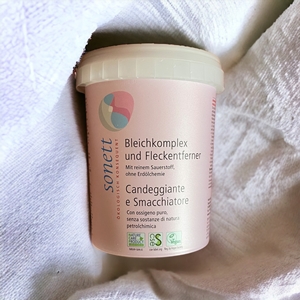 Hallo ihr Lieben. In den letzten Wochen hatten wir euch verschiedene Waschmittel des Sonett Baukastensystems vorgestellt, mit denen wir sehr zufrieden sind. Neben Waschmitteln und Wasserenthärtern kommt bei 2 Kindern und 2 Katzen auch oft ein Fleckentferner zum Einsatz. Der Sonett Bleichkomplex und Fleckentferner ist der Baustein 3 im Sonett Baukastensystem und kommt bei uns dann zum Einsatz, wenn hartnäckige Flecken auf Shirts, Hosen, Decken usw. entfernt werden müssen.