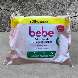 Die bebe Erfrischenden Reinigungstücher eignen sich für normale Haut und enthalten Mizellentechnologie sowie Rosenwasser, die bis zu 99% wasserfestes Make-Up entfernen. Ihre Fasern sind zu 100% pflanzlichen Ursprungs und ihre Verpackung ist recycelfähig.