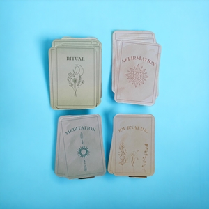 Die entsprechende Kategorie steht auf der Rückseite der Karten, sodass ich vor dem Ziehen einer Karte entscheiden kann, ob ich heute eine Meditation oder ein Ritual benötige oder eine Affirmation mir die nötige Stärke verleihen kann. Wenn ich mich entscheide, ein Ritual durchzuführen, ist es sehr wichtig, dassich dafür genügend Zeit und Ruhe habe.