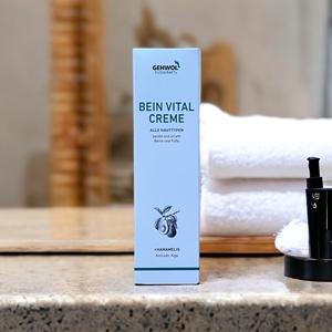 Wenn ich den ganzen Tag herumgerannt bin und abends schwere, müde Beine habe, belebt die GEHWOL FUSSKRAFT Bein Vital Creme sofort. Sie eignet sich zur Pflege aller Hauttypen. Ihre Inhaltsstoffe Avocado, Alge, Vitamin-E-Acetat, Hamamelis, Bisabolol und Farnesol regenerieren müde Füße und beanspruchte Beine sofort. Die Creme zieht sehr schnell in die Haut ein, fettet nicht, verleiht ein geschmeidiges Hautgefühl, schützt vor Fußpilz und desodoriert. Verbunden mit einer kleinen Bein- und Fussmassage wird die belebende Wirkung noch unterstützt.