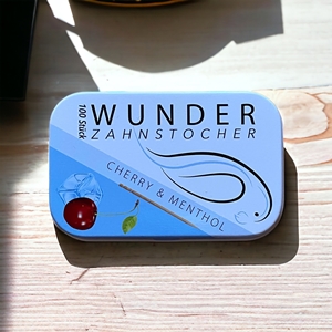 Wenn man die kleine Dose öffnet, duftet es schon lecker nach Kirsche und Menthol. Und genauso schmecken die Wunder-Zahnstocher auch! Der Geschmack ist richtig intensiv – er stammt von Lebensmittelaromen. Wunder-Zahnstocher in der kleinen Metalldose gibt es noch in vielen anderen leckeren Geschmacksrichtungen.
