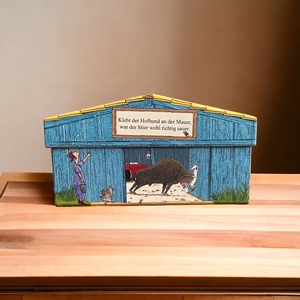 Hallo ihr Lieben. Heute habe ich einen super Tipp für alle, die gern Memo spielen: bei MeterMorphosen erschien ganz neu das lustige Bauernregel-Memospiel „Wenn die Kuh am Himmel schwirrt“ von Philip Wächter und Moni Port. Beide sind ein eingespieltes Team bei der Produktentwicklung und dieses Memospiel ist das dritte, das in einem süßen Haus (bei diesem Memo in einer Scheune) verpackt ist: