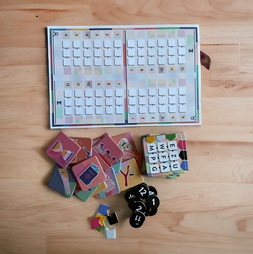 Das Spiel geht über 12 Runden. In jeder Runde wird ein Bild- und ein Buchstabenplättchen aufgedeckt. Das Buchstabenplättchen gibt 3 Buchstaben vor, denen die Spieler/innen eine dazu passende Bedeutung geben müssen, die zum aufgedeckten Bild passt. Zum Beispiel eine Tasche mit Strandutensilien und die Buchstabenkombination WFA – könnte ergeben: wasserfeste Ferientasche anbei. Dann werden das Buchstabenplättchen wieder umgedreht und das Bildplättchen verdeckt oben drauf gelegt. Nach 12 Runden müssen sich alle an die Abkürzungen mit den 3 Buchstaben in der richtigen Reihenfolge wieder erinnern und jeder muss für sich die Abkürzung auf dem Block notieren. Für richtige Buchstaben gibt s dann Punkte – wer die meisten Punkte gesammelt hat, gewinnt!
