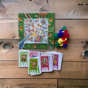 Zum Spielen sucht sich jeder eine Farbe aus und nimmt sich die 7 dazu passenden Klett-Pancakes. Die 28 Wurfkarten mit der hellen Rückseite werden gemischt und verdeckt als Stapel abgelegt. Das größte Faultier unter den Kindern darf mit dem Spiel beginnen. Es deckt die oberste Wurfkarte auf. Das Tier, das darauf abgebildet ist, darf als erstes einen Pancake werfen und zwar in der Art und Weise, wie es auf der Karte zu sehen ist. Entweder wie ein Löwe, oder wie eine Giraffe oder wie ein Vogel usw. Jeder Pancake, der auf der Picknick-Decke kleben bleibt, bringt einen Punkt. Am Ende des Spiels gewinnt derjenige, der die meisten Pancakes auf der Decke kleben hat.