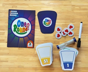 Hallo ihr Lieben. Bei unseren Spieleabenden mit Freunden spielen wir sehr gern kooperative Spiele, bei denen man entweder gemeinsam ein Ziel erreichen muss oder in Teams gegeneinander spielt. Das neue „One Round?“ Spiel von Schmidt Spiele bietet euch beide Varianten. Es wird für 2-12 Spieler/innen ab 8 Jahre empfohlen. Als Spieldauer werden ca. 15 Minuten angesetzt: