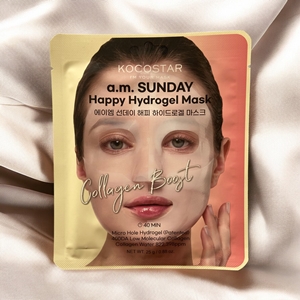 Verwöhnende Spa-Momente erziele ich mit der a.m. SUNDAY Happy Hydrogel Mask, die aus einer mikroperforierten Folie mit 3.600 Löchern besteht, durch die eine Art Vakuum entsteht durch das Nährstoffe und viel Feuchtigkeit in meine Haut transportiert werden. Ihre Inhaltsstoffe von 82 % norwegischem Meereskollagen, Niacinamid und Adenosin sorgen innerhalb von 40 Minuten für verbesserte Hautelastizität und fördern die Kollagensynthese.