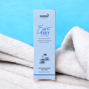 Mit der GEHWOL Fusskraft Soft Feet Lotion erfrische und pflege ich meine Füße und Beine gern nach dem Sport. Die Lotion enthält beruhigende Wasserlilie und Seidenextrakt, der meine Haut glättet. Wirkstoffe aus der Rotalge Palmaria Palmata, die erfrischend wirken sowie Hyaluron, Avocadoöl und Phytosqualan, die die Haut mit viel Feuchtigkeit versorgen und raue Haut wieder weich und geschmeidig machen. Meine müden und schweren Beine fühlen sich wieder wohltuend leicht und erfrischt an.