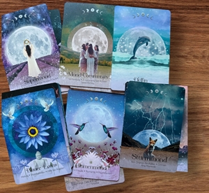 Die wunderschönen Karten sind im Collagenstil gehalten und zeigen unterschiedliche Aspekte des Mondes und sind in Mondkarten, Mondtiere, Mondgöttinnen, Mondpflanzen und 12 Vollmonde des Jahres unterteilt.
